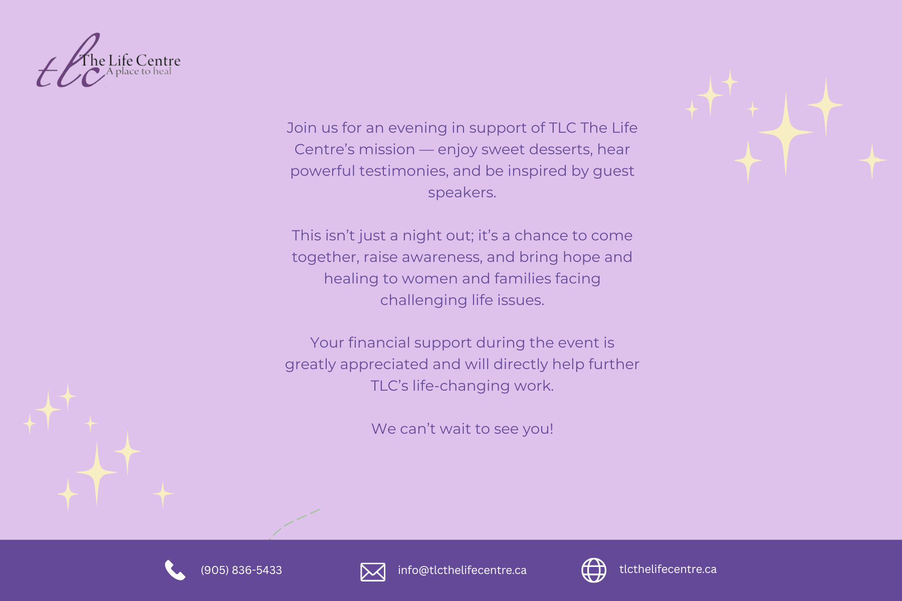 Host a TLC Dessert Night fundraiser and turn an evening of delicious treats into a powerful moment of hope, healing, and inspiration. Pick a date, gather your community, hear life-changing testimonies, and make a lasting impact – while TLC takes care of the rest!